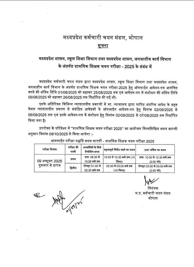 उम्मीदवारों को सलाह दी जाती है कि एमपीईएसबी की आधिकारिक वेबसाइट से पुष्टि करें