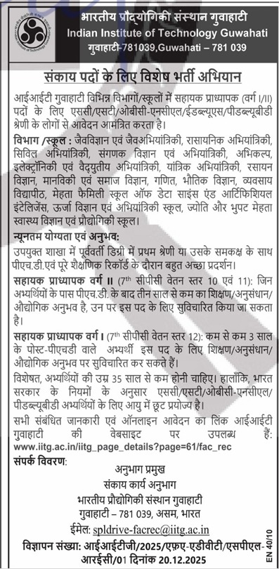 अगर आप IIT Guwahati Faculty Recruitment 2026करना चाहते हैं, तो यह समय perfect opportunity है। ऐसे high-salary jobs बहुत कम निकलती हैं