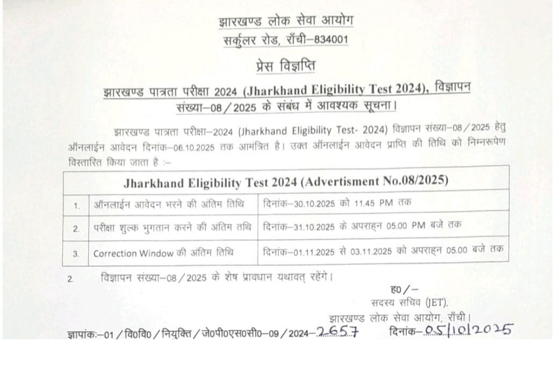 उम्मीदवारों को सलाह दी जाती है कि JPSC की आधिकारिक वेबसाइट से पुष्टि करें
