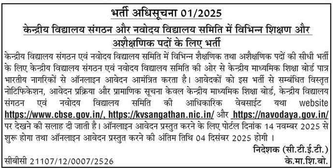 Note: Interested candidates who wish to apply for the KVS/NVS post can submit their application online before 04 December 2025. Make sure to complete the application before the deadline.